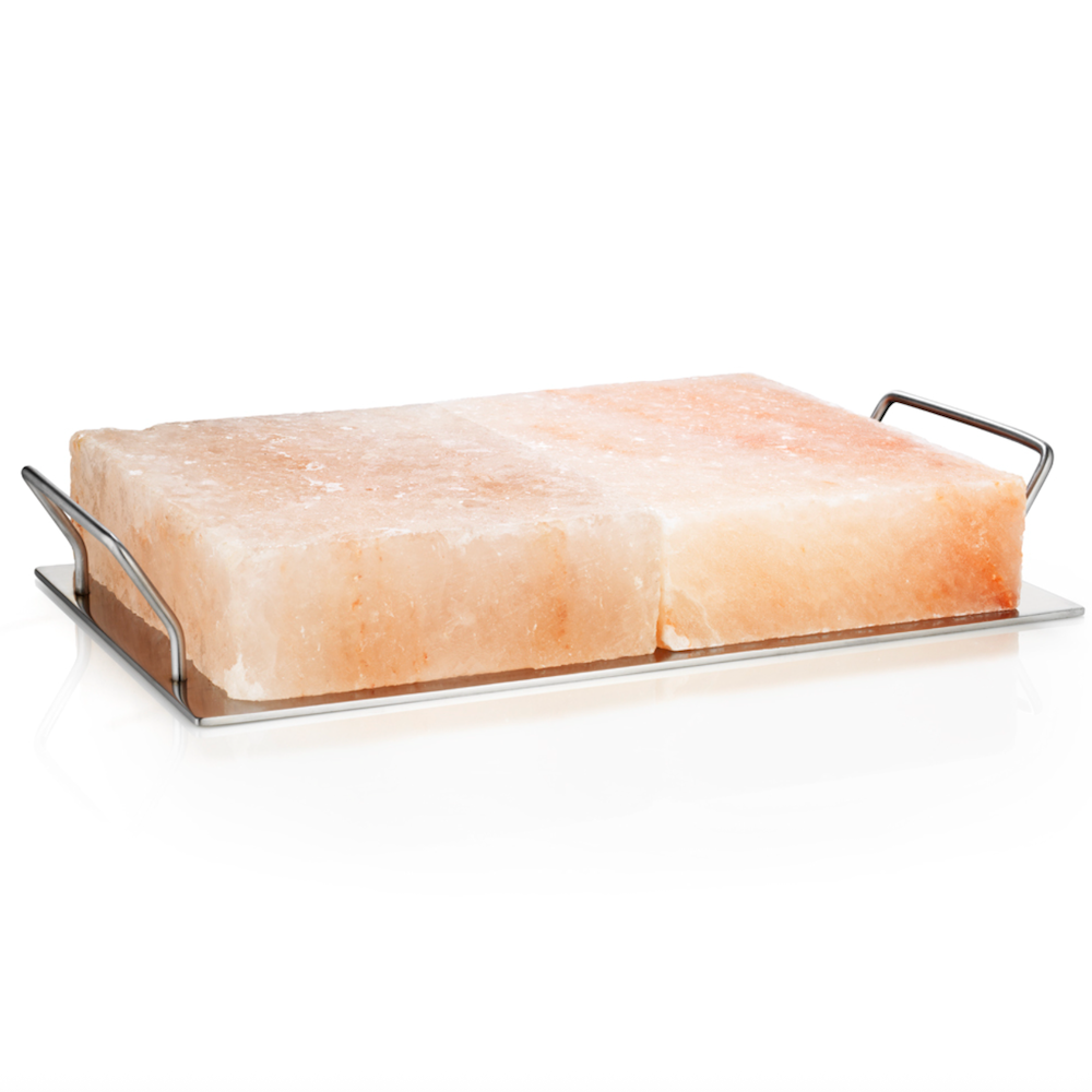 Take your barbecuing to a whole new level with the BBQ Pro kit from Rivsalt. Suitable for use on gas and charcoal barbecues, in the oven or on electric, gas or induction stove tops, the kit comprises two cooking surfaces made from high-quality Himalayan salt. To use, simply add oil to one of the salt blocks and slowly heat. Before long, you’ll have a sizzling cooking surface that seasons as it cooks; evenly grills meat, fish, shellfish, and vegetables. For a twist, chill the blocks in the refrigerator to create a sophisticated surface for serving sushi, fresh fruit, and even ice cream. The BBQ pro kit includes a metal tray for use with inductive stove tops and two large Himalayan salt blocks.
