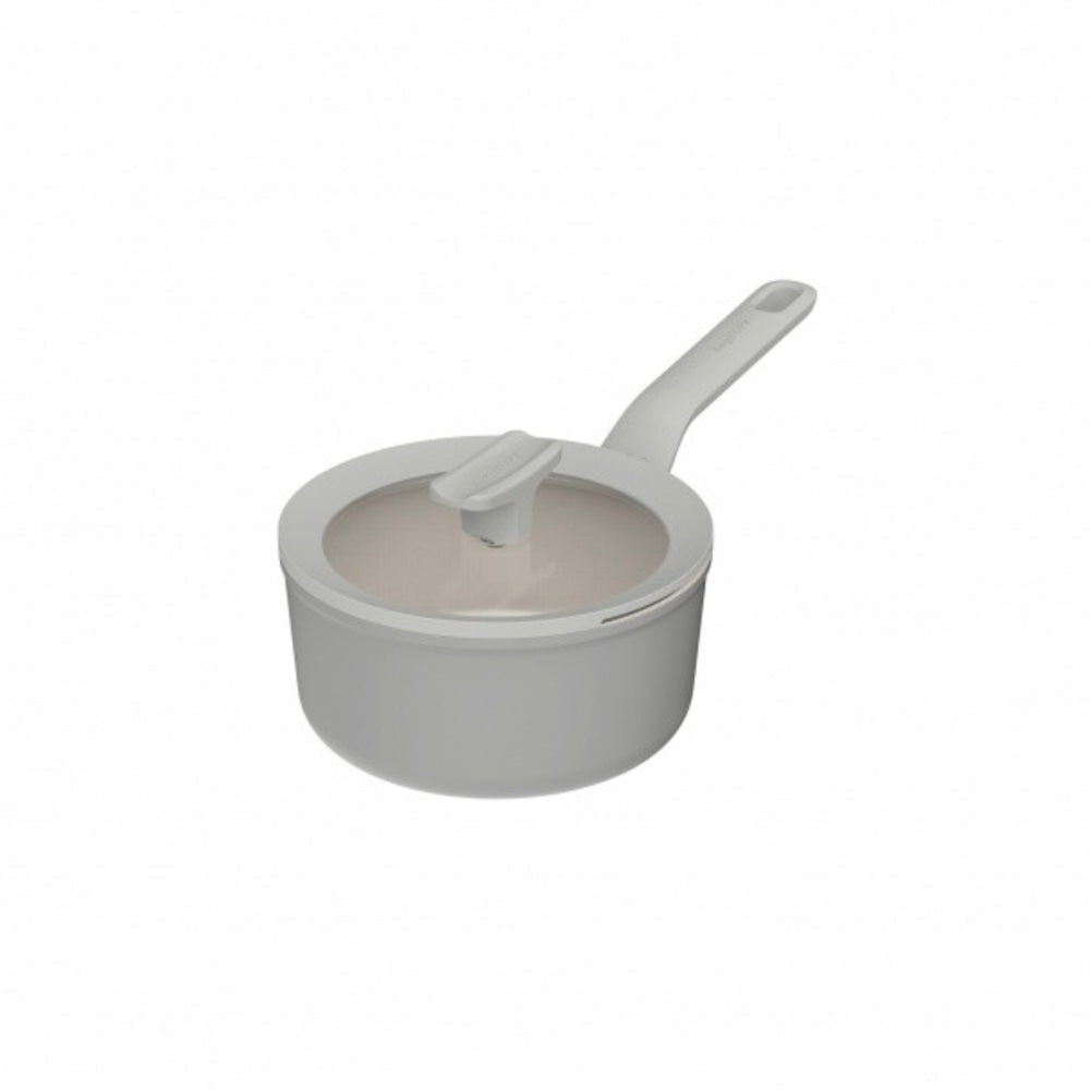 Whether you're stewing apples for a crumble, whipping up a delectable sauce, or preparing rice for two, this user-friendly and energy-efficient saucepan is the perfect partner for all your culinary needs. Crafted with a 100% recycled aluminium body, it guarantees fast and even heat distribution on all stovetops, including induction. Its premium quality ceramic non-stick coating ensures healthy and sustainable cooking with minimal oil. The robust stay-cool handle and glass lid, which allows you to monitor your cooking without removing the lid, provide the utmost convenience. As a bonus, the knob on the lid even doubles as a spoon rest..